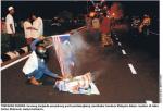 1) Suasana yang ada seolah-olah pemuda yang bertopi keledar itu bersendirian dengan tindakannnya membakar bendera. Tiga pemuda di sebelahnya seperti "tak ambil kisah" terhadap perbuatannya begitu juga pemuda-pemuda yang di atas jalanraya di belakangnya.