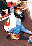 B. Apabila imej itu diteliti dengan resolusi yang tinggi kita akan dapat melihat kesan tampalan di aliran badan pemuda yang mencangkung itu.
