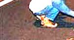Justeru itu ada dua kemungkinan, pertama hanya orang gila biasanya yang tidak akan dipedulikan oleh sesiapa. Kedua imej pemuda yang membakar bendera itu sebenar dilukis kemudian. Saya lebih berat dengan alasan yang kedua. Cuba kita telitikan lagi dengan lebih terperinci terhadap imej itu.